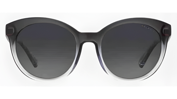 Montura: Color gris translúcido con efecto degradado, forma redondeada tipo “Cat-Eye” y fabricada en acetato de alta calidad, resistente y ligera