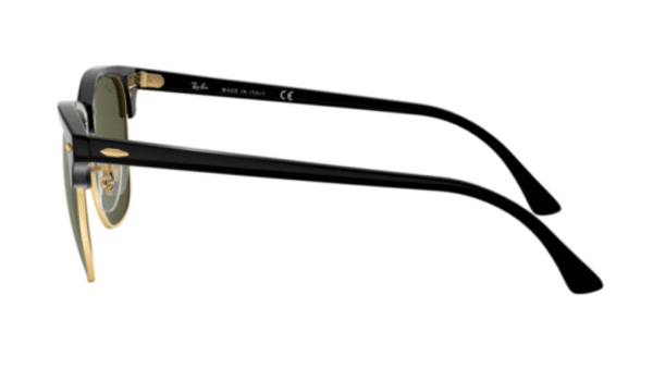Montura: Material de acetato en color negro brillante y metal dorado y diseño Clubmaster
