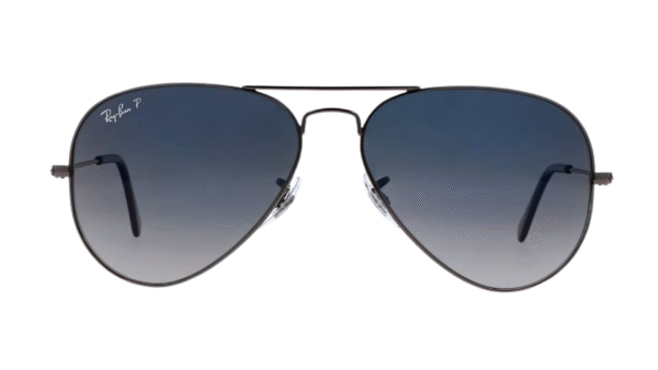 Montura: Material metal fino, tipo aviador, color Gun Metal, puente doble ajustable