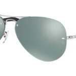 Montura: Material metal, estilo aviador moderno semi-rimless y acabado en plata pulida