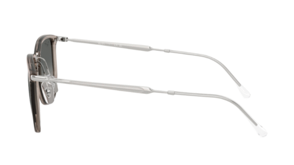 Montura: Material nylon, color Transparent Grey, acabado pulido, forma geométrica moderna