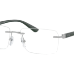 Montura: Elegible para lentes progresivos, formulados, material metal combinado con piezas inyectadas, color Matte Silver con Matte Green
