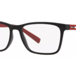 Montura: Elegible para lentes progresivos, formulados, material plástico, color Black/Dark Red