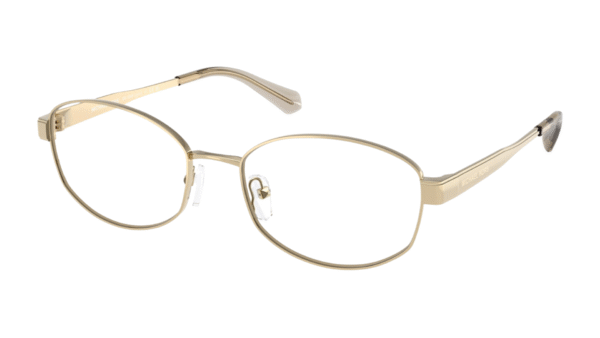 Montura: Elegible para lentes progresivos, formulados, material metal, tipo montura completa, forma ovalada y color Light Gold