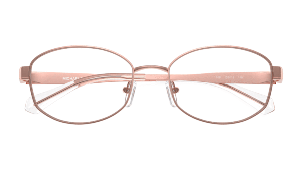 Montura: Elegible para lentes progresivos, formulados, material metal, tipo montura completa, forma: ovalada y acabado en rosa dorado