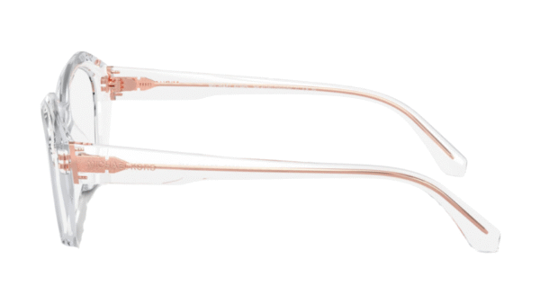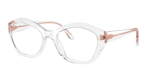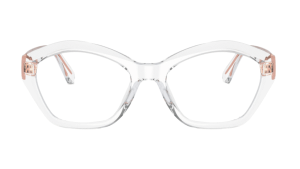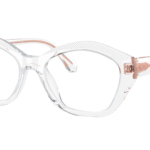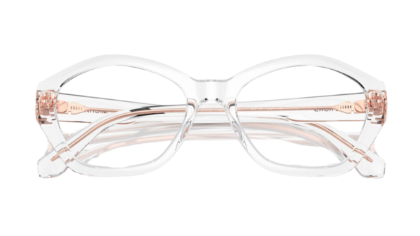 Montura: Elegible para lentes progresivos, formulados, material acetato inyectado con forma cat-eye, montura completa, color Crystal Clear