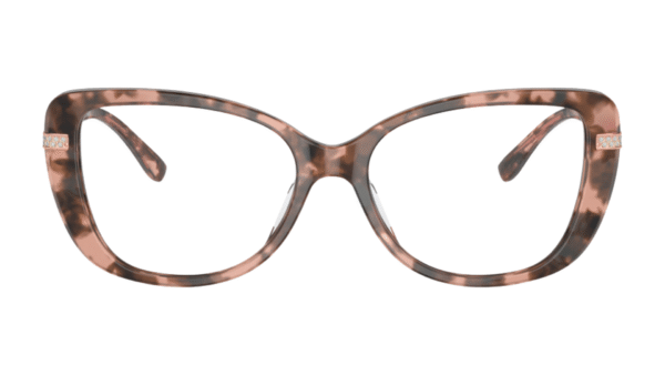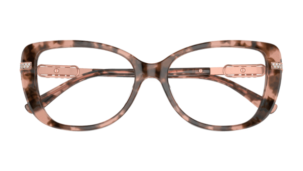 Montura: Elegible para lentes progresivos, formulados, material acetato con detalles metálicos, tipo aro completo, forma cat-eye y color Pink Tortoise