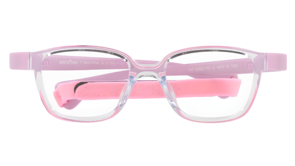 Montura: Elegible para lentes formulados, fabricada en material flexible, hipoalergénico y altamente resistente. Sin tornillos ni piezas metálicas, color Transparent/Pink