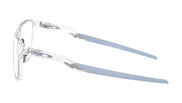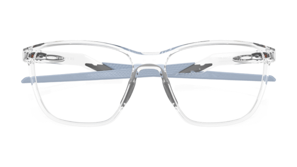 Montura: Elegible para lentes progresivos, formulados, elaborada en O-Matter, acabado Polished Clear y diseño cuadrado de línea futurista