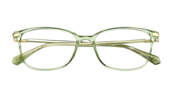 Montura: Elegible para lentes progresivos, formulados y elegibles, material Plástico de marco completo, color Transparente verde.