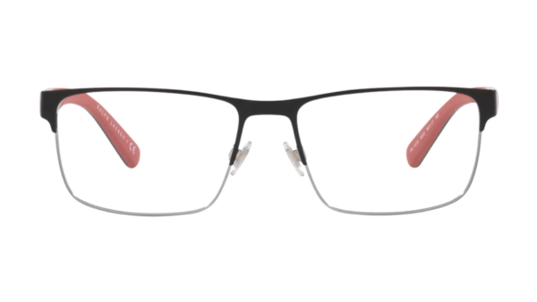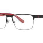 Montura: Elegible para lentes progresivos, formulados, material Metal integral en Shiny Black con detalles en Gunmetal hacia el interior y forma rectangular clásica y elegante