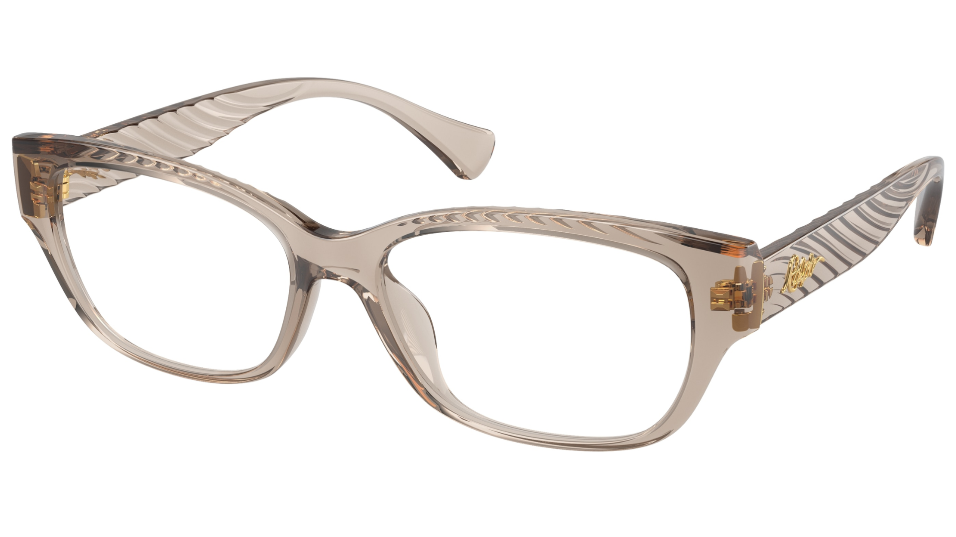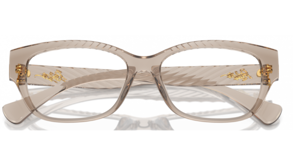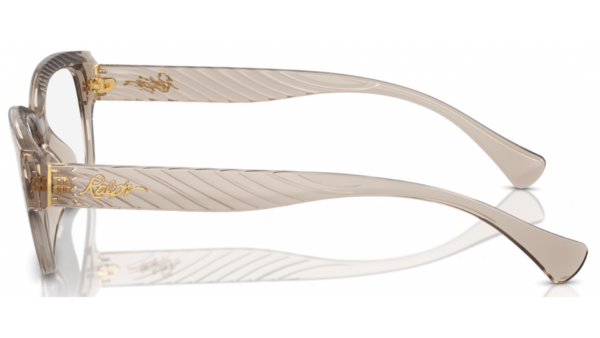 Montura femenina Ralph Lauren RA7165U 5802, diseño elegante tipo cat eye/ovalado en tono beige transparente