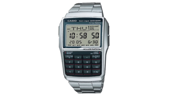 El modelo DBC-32D-1A es un reloj digital multifunción que integra calculadora de 8 dígitos y banco de datos con memoria para contactos, cuenta con pantalla LCD de alto contraste para fácil lectura, funciones como hora mundial, cronómetro, alarmas múltiple