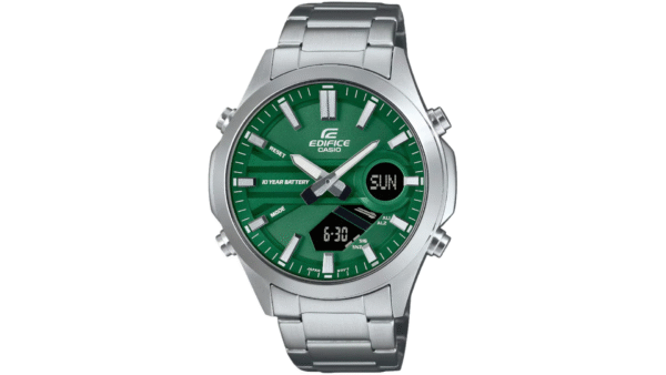Integra batería de larga duración (10 años), cronómetro 1/100 s, temporizador de hasta 24 h, hora mundial (29 zonas/30 ciudades), tres alarmas diarias, calendario automático y resistencia al agua de 100 m
