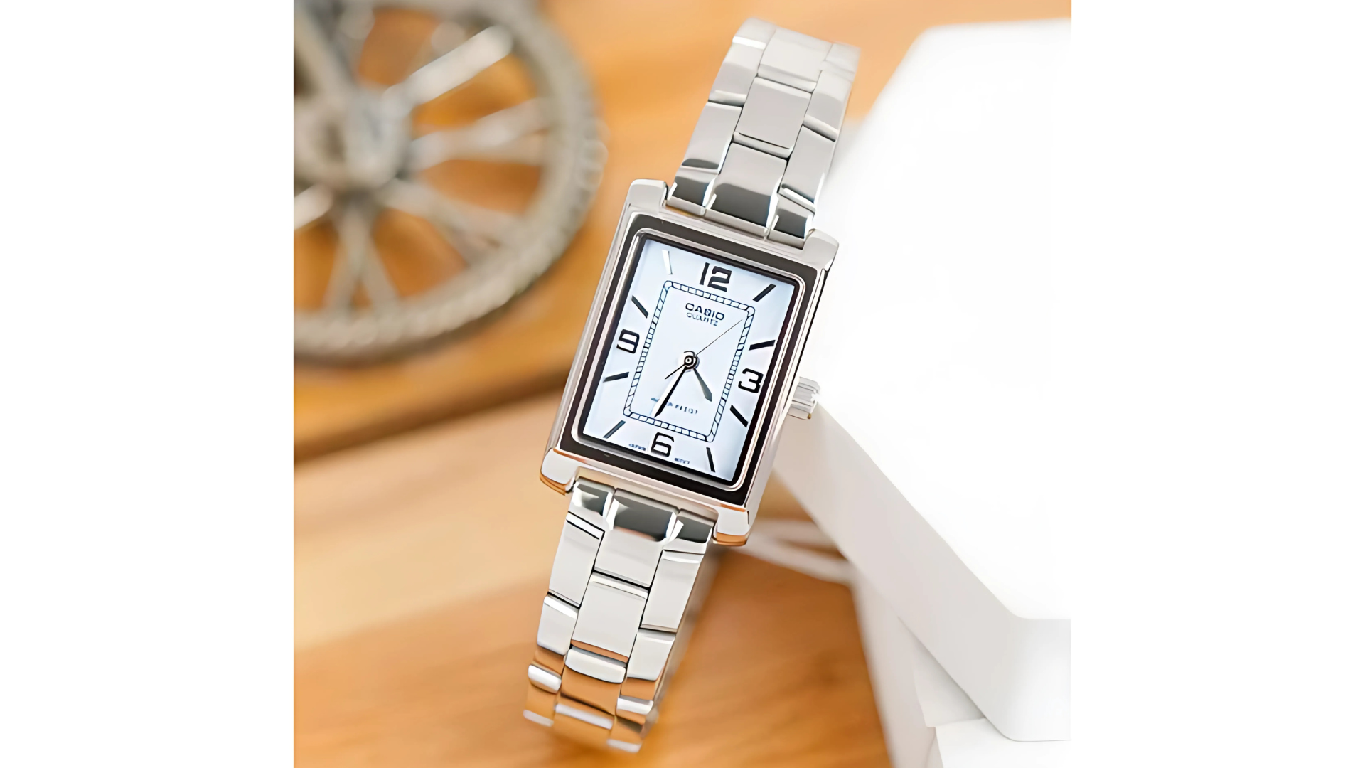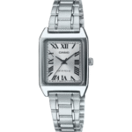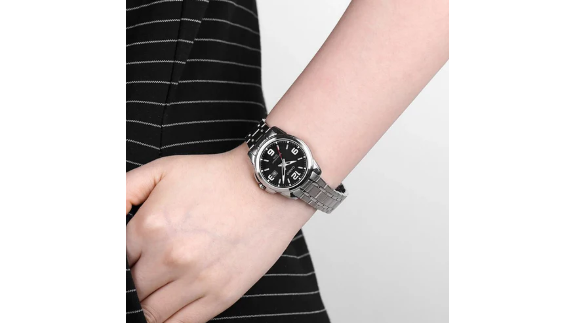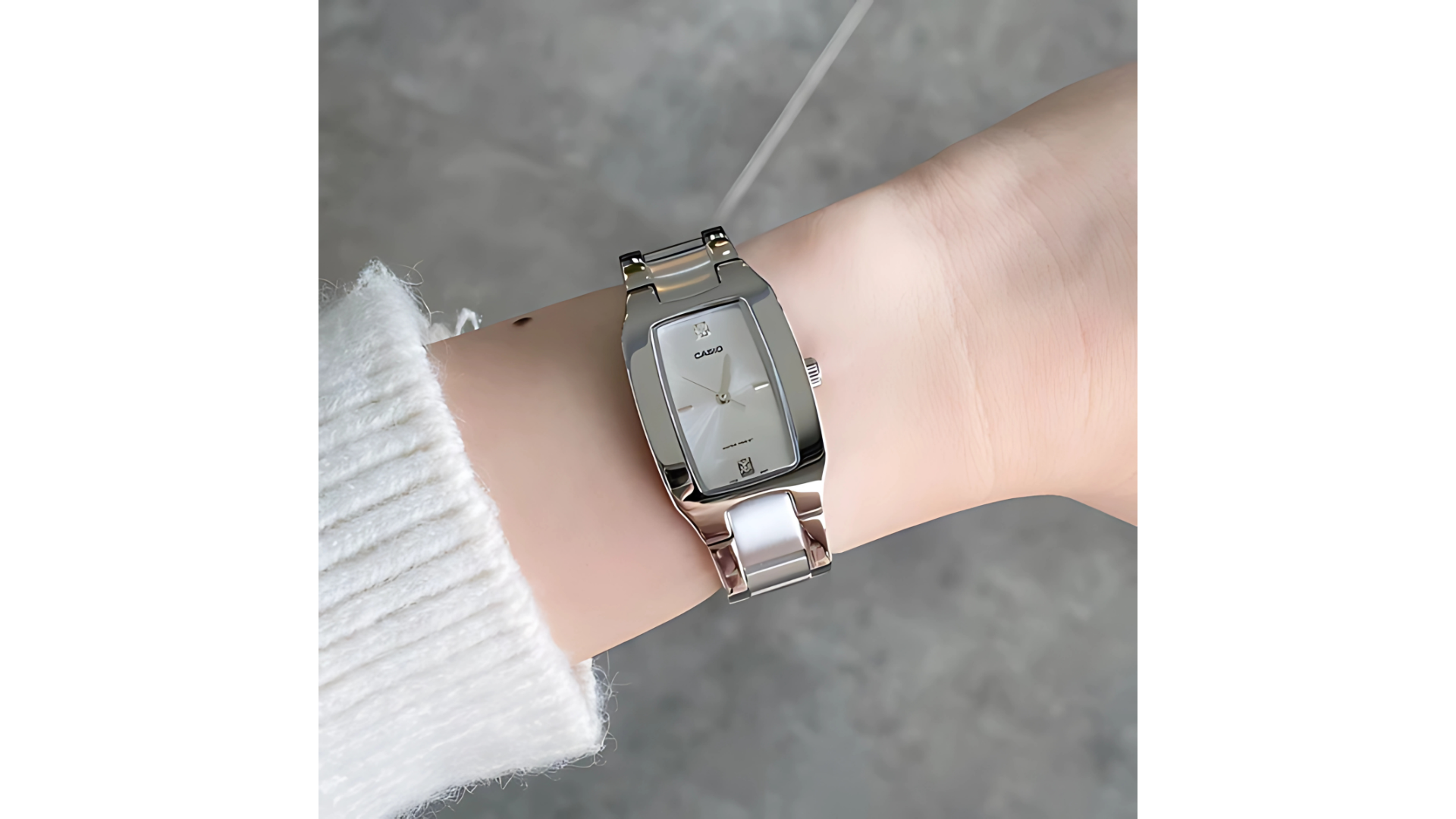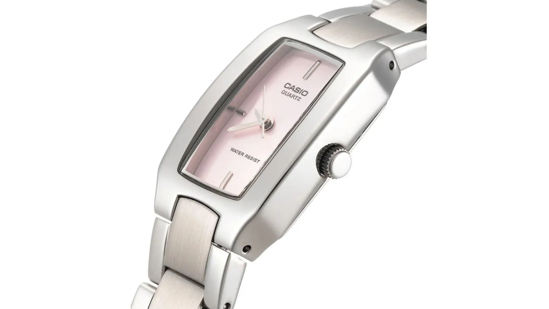 Integra tres manecillas con precisión ±20 seg/mes, caja de acero de 31×22×7,5 mm, cristal mineral, brazalete de acero con cierre desplegable, batería aproximada de 3 años y resistencia al agua para uso diario