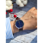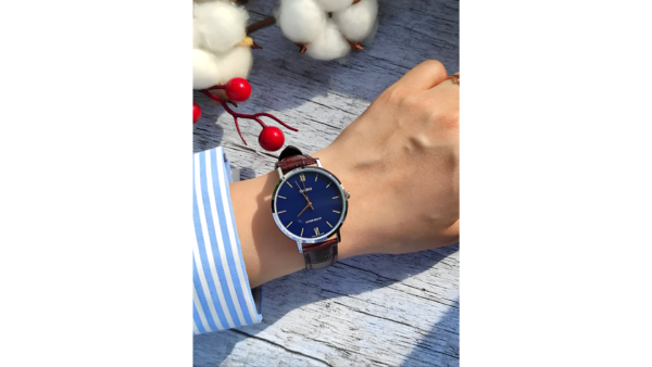 Integra movimiento de cuarzo, cristal mineral, correa de cuero genuino, caja ultradelgada de 7,9 mm de espesor, resistencia ligera al agua (uso diario) y una duración estimada de pila de 3 años