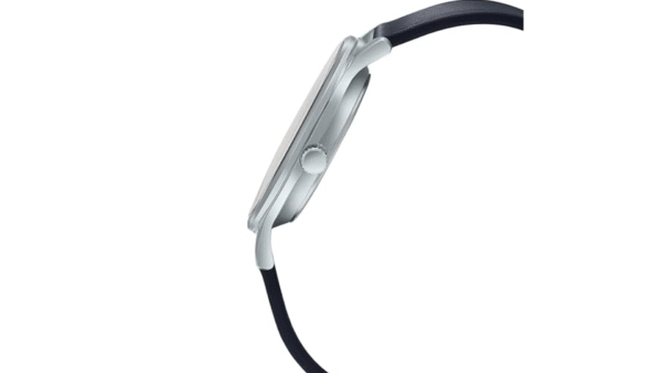 Integra movimiento de cuarzo, caja de 48,3×42×9,1 mm, correa de piel genuina, resistencia al agua de 50 m, cristal mineral esférico y visualización de fecha a las 3 h