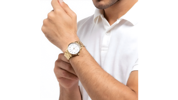 Integra cuarzo con movimiento japonés, cristal mineral, resistencia al agua de 3 ATM, correa de acero inoxidable y función de fecha a las 3 en punto