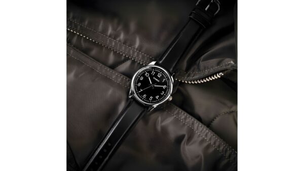 Integra reloj analógico con movimiento de cuarzo de tres agujas, visualización de fecha, precisión ±20 s/mes, cristal mineral, correa de cuero, batería con duración aproximada de 3 años y resistencia al agua para uso diario.