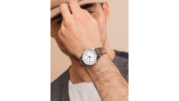 Integra movimiento de cuarzo (±20 s/mes), visualización analógica de 3 manecillas, cristal mineral, resistencia al agua hasta 30 m (3 ATM), caja de 40 mm y correa de cuero o sintética intercambiable