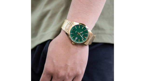 Integra movimiento de cuarzo confiable, pantalla analógica con indicador de día y fecha, cristal mineral resistente a rayaduras y resistencia al agua, combinando un diseño sofisticado y funcional