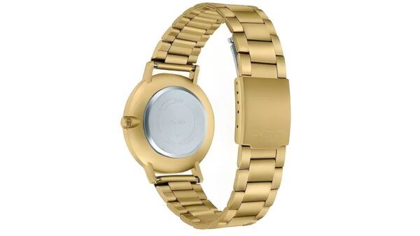 Reloj analógico de tres agujas con movimiento de cuarzo, precisión ±20 s/mes, cristal mineral, correa y caja de acero, resistencia al agua para uso diario y autonomía de batería de aproximadamente 3 años.
