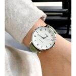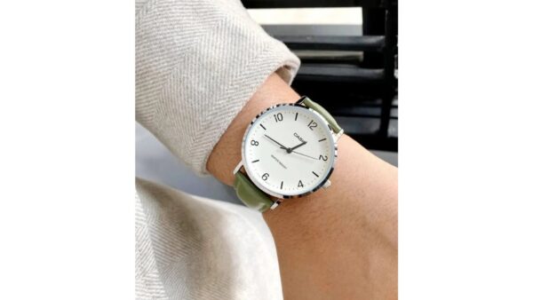 Integra caja de acero de 46 × 40 × 8,2 mm, correa de cuero, cristal mineral, movimiento de cuarzo con precisión de ±20 s/mes, batería con duración aproximada de 3 años y resistencia al agua para uso cotidiano