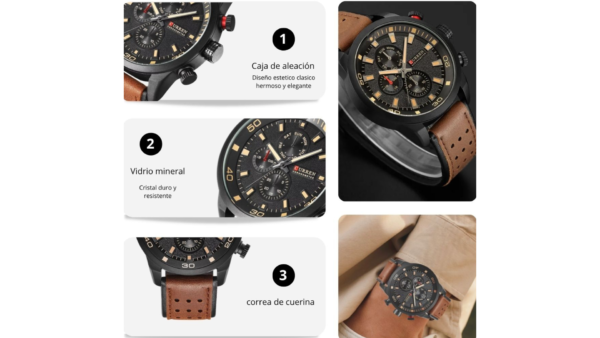 Reloj Curren 8250 Café/Negro – Cuero de Hombre