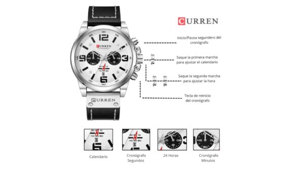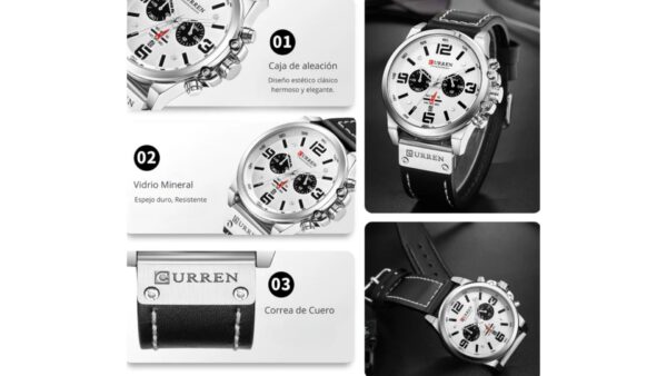 Integra movimiento de cuarzo japonés de alta precisión, incluye cronógrafo de tres subesferas y calendario completo, cristal mineral resistente a rayones y resistencia al agua de 3 ATM útil para salpicaduras o lluvia ocasional