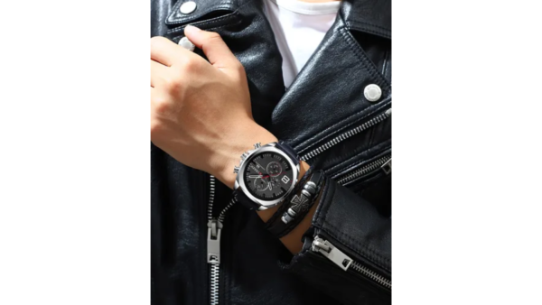 Integra cronógrafo de cuarzo con subesferas para medición de tiempo e indicador de fecha, caja de acero y cristal mineral resistente; correa de cuero y resistencia al agua 3ATM, ideal para uso diario y protección contra salpicaduras