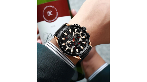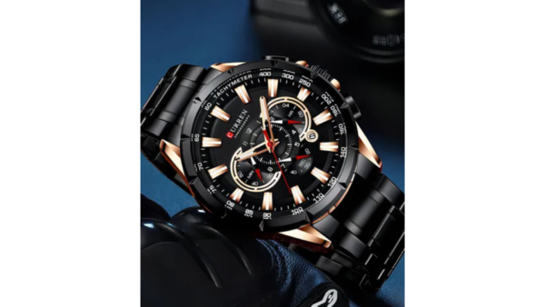 Integra cronógrafo funcional y calendario con movimiento cuarzo preciso, lectura analógica clara y estructura resistente; ofrece desempeño confiable para uso diario con resistencia básica al agua, ideal para quienes buscan funcionalidad y estilo