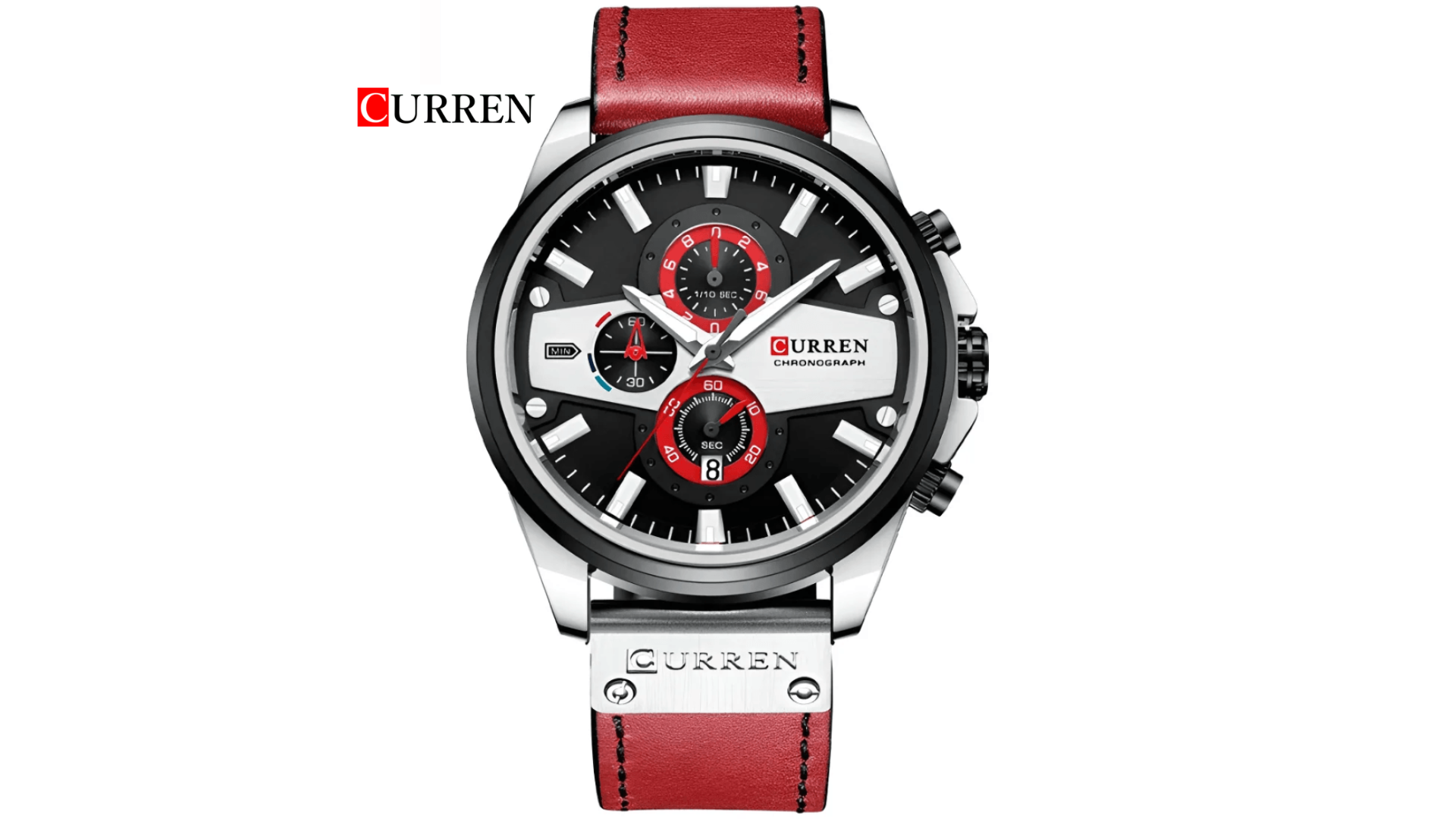 Integra cronógrafo de cuarzo con caja de aleación, cristal mineral resistente y correa de cuero; incorpora subesferas para medición de tiempo, indicador de fecha, manecillas luminosas y resistencia al agua 3ATM para salpicaduras y uso diario
