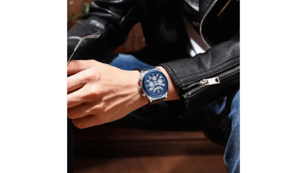 Integra diseño elegante con cronógrafo funcional, calendario integrado y movimiento de cuarzo preciso, ofreciendo resistencia al agua para uso diario y una correa duradera que asegura comodidad y estilo en cualquier ocasión