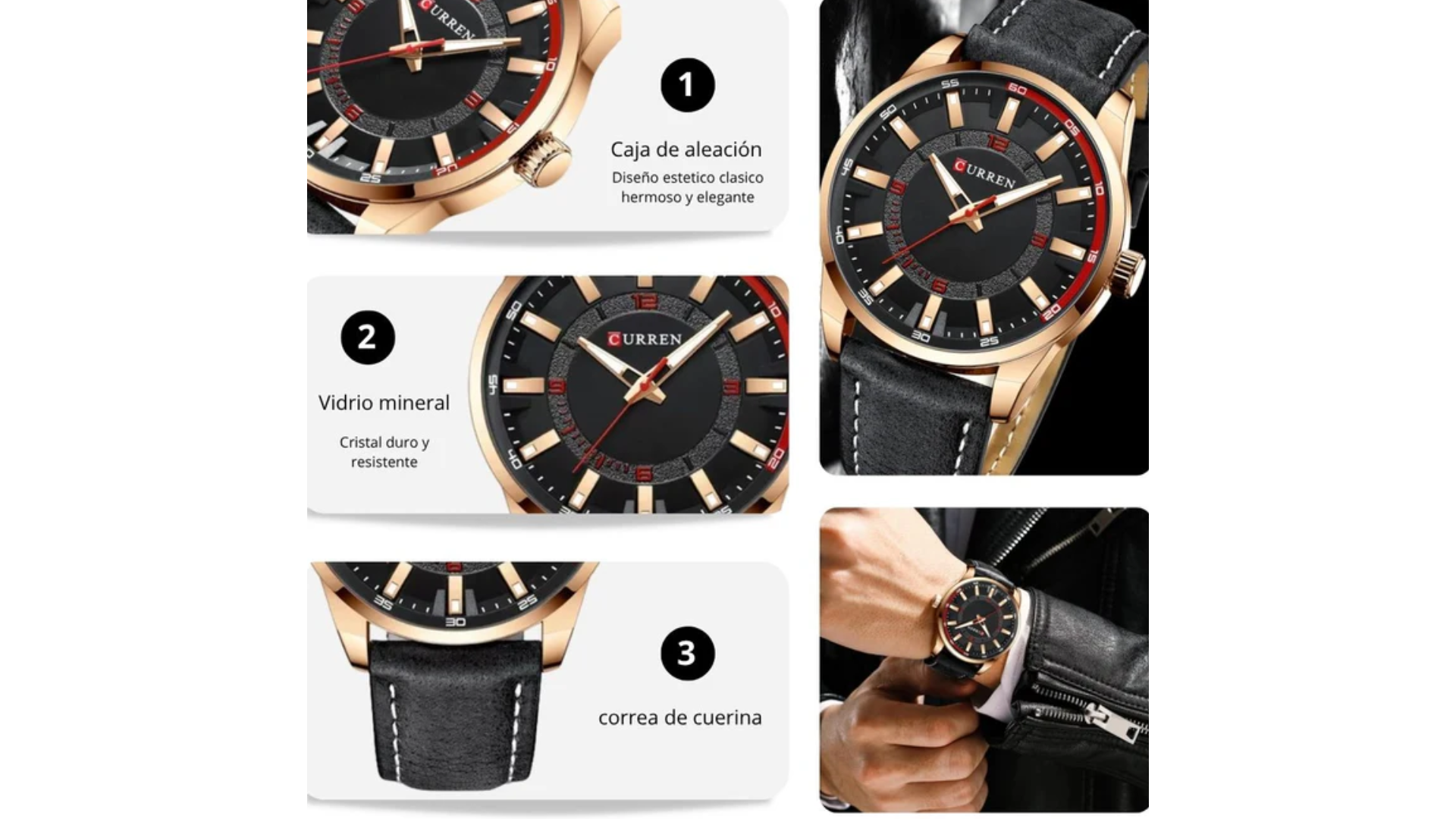 Reloj Curren 8392 Café/Oro rosa – Cuero de Hombre