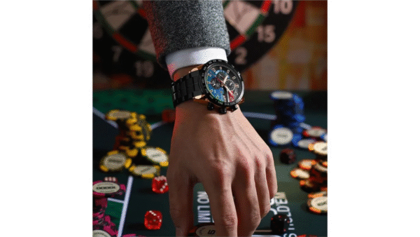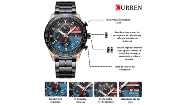 ChatGPT Plus Integra caja pavonada / oro rosa con bisel negro/azul de 48 mm × 14 mm; correa pavonada de acero inoxidable de 24 mm; movimiento de cuarzo japonés; resistencia al agua 3 ATM; cronógrafo funcional; calendario; diseño analógico elegante