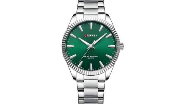 Integra movimiento de cuarzo de alta precisión, resistencia 3 ATM (30 m), manecillas luminiscentes, caja de 44 mm en aleación, pulsera de acero inoxidable ajustable, diseño analógico elegante con detalles de cronógrafo