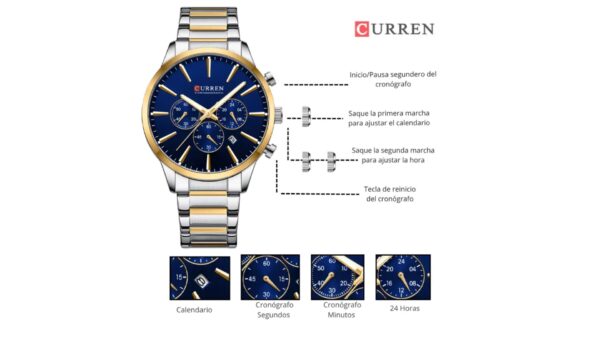 Reloj Curren 8435 Plateado/Dorado – Metálico de Hombre