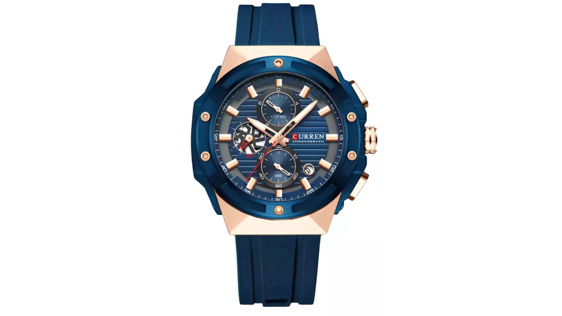 Integra cronógrafo funcional y calendario automático con movimiento cuarzo de alta precisión, diseño analógico de lectura clara y estructura resistente, ofreciendo rendimiento confiable para uso diario con resistencia básica al agua