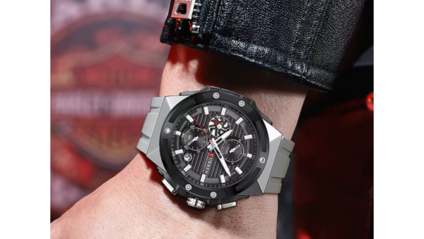 Integra movimiento de cuarzo, cronógrafo funcional, visualización de fecha, correa de silicona y cierre de hebilla; caja de aleación resistente y resistencia al agua de hasta 3 ATM (salpicaduras)