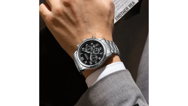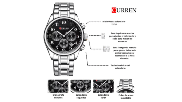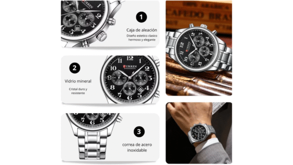 Integra cronógrafo con movimiento de cuarzo japonés, calendario completo, aguja luminosa, resistente al agua hasta 30 m, caja de 43 mm en aleación de acero y correa metálica ajustable