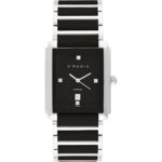 Integra movimiento de cuarzo ultra-preciso, cristal de zafiro anti-arañazos, caja y pulsera en acero y cerámica con cierre mariposa, y está diseñado para uso diario con elegancia y durabilidad