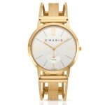 Integra caja de acero de 36 mm, correa metálica, cristal de zafiro, mecanismo suizo de cuarzo, tablero blanco y estilo casual.