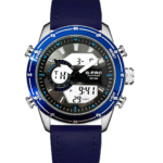 Integra tablero análogo/digital con pantalla multifunción (hora, fecha, alarma y cronómetro), correa de cuero auténtico, cristal mineral, movimiento de cuarzo fiable y resistencia al agua para uso diario