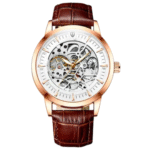 Integra movimiento automático, correa de cuero con cierre de hebilla, caja resistente al agua para uso diario, material de micra en policarbonato y pulsera de acero inoxidable que asegura durabilidad