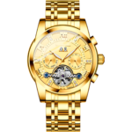 Integra movimiento automático visible sin batería, esfera con mecanismo esqueleto expuesto, marcadores clásicos y precisos, cristal resistente, caja robusta y brazalete metálico duradero, combinando precisión mecánica con diseño elegante para uso diario