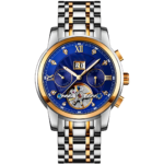 Integra movimiento automático con calendario integrado y movimiento sin batería, pantalla analógica de fácil lectura, caja y correa de acero inoxidable duradero, resistencia al agua para uso diario, cierre seguro con hebilla y estuche incluido que combina