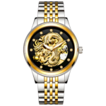 Integra calendario, mecanismo visible tipo “corazón abierto”, caja y pulsera de acero inoxidable y resistencia al agua de 3 ATM, ideal para uso diario con diseño sofisticado y moderno