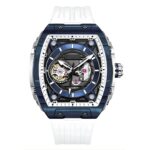 Integra reloj automático con mecanismo sin batería, caja de geometría cuadrada, correa de Silicona, material de cristal policarbonato, resistencia al agua 3 ATM, ideal para uso diario con estilo masculino moderno.