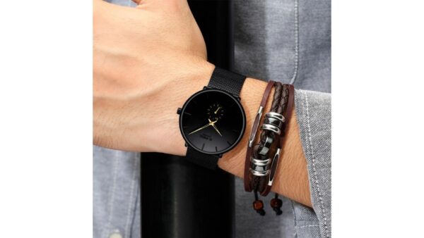 Integra reloj análogo de cuarzo con caja de aleación, correa de acero inoxidable, cristal mineral, resistencia al agua 3 ATM (salpicaduras), diámetro de 4 cm y peso aproximado de 69 g.
