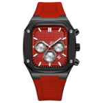 Integra movimiento de cuarzo, funciones de cronógrafo (1/10 s, segundos y hasta 60 minutos), indicador de fecha, correa de silicona y resistencia al agua 3 ATM